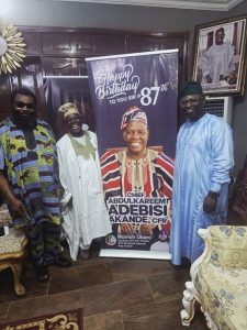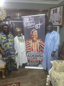 IBADAN – THE General Secretary of the All Progressives Congress (APC) in the United Kingdom and a senatorial aspirant for Kogi Central, Chief Momoh Yusuf Obaro, has joined well-wishers across the country to celebrate former Osun State Governor and elder statesman, Chief Bisi Akande, on his 87th birthday.