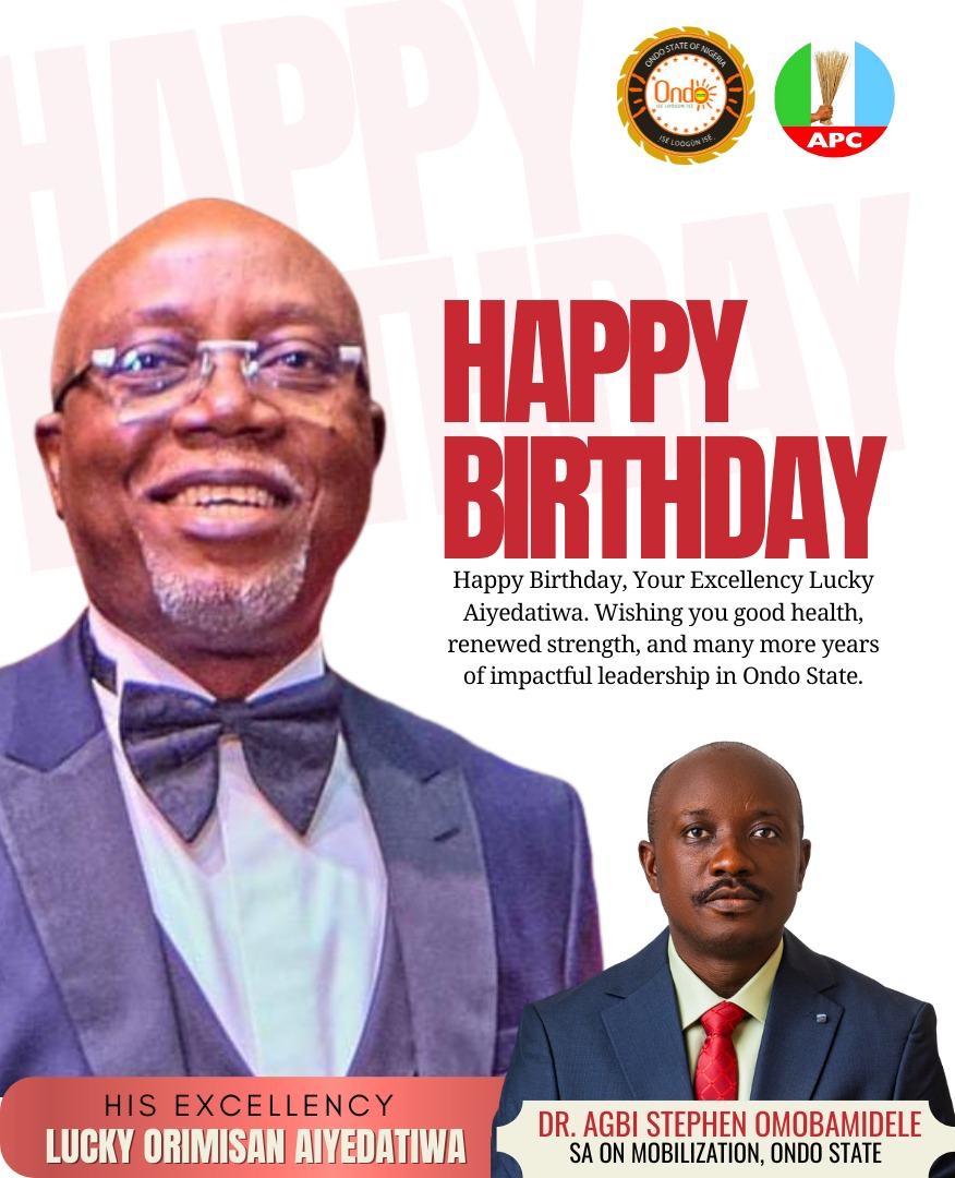 IBADAN – THE Special Adviser on Mobilization to the Ondo State Governor, Dr. Agbi Stephen Omobamidele, has felicitated Governor Lucky Orimisan Aiyedatiwa on the occasion of his birthday, describing him as a selfless and people-oriented leader.